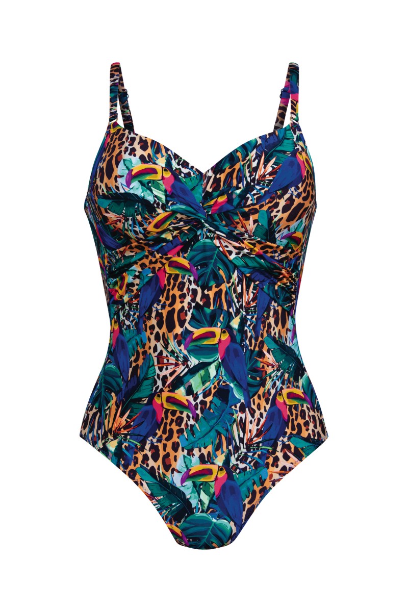 Μοντέρνο ολόσωμο μαγιό μαστεκτομής χωρίς μπανέλες. Προφορμαρισμένες (Padded) θήκες και από τις δύο πλευρές. Εξαιρετικής ποιότητας Lycra. Ρυθμιζόμενες τιράντες . Το ελαφρώς βαθύ ντεκολτέ και το τραπέ σχέδιο του, δίνουν μια πιο θηλυκή εμφάνιση, τονίζοντας τέλεια την σιλουέτα.